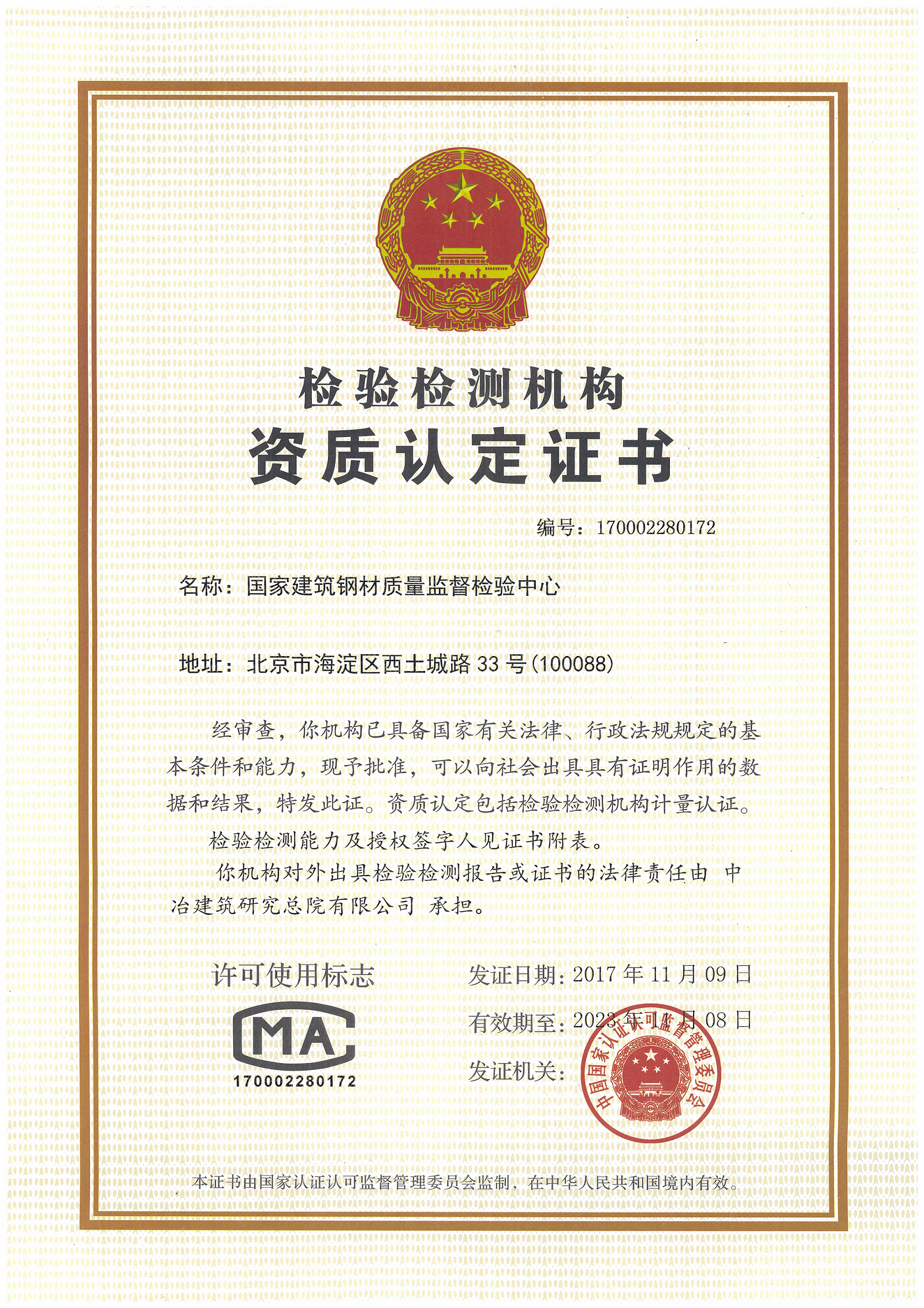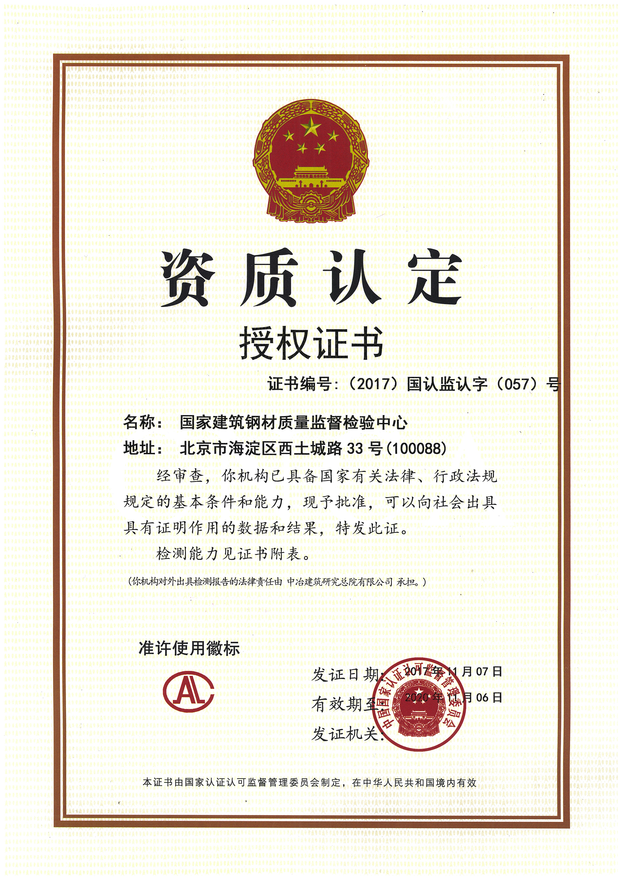 國(guó)家建筑鋼材質(zhì)量監(jiān)督檢驗(yàn)中心