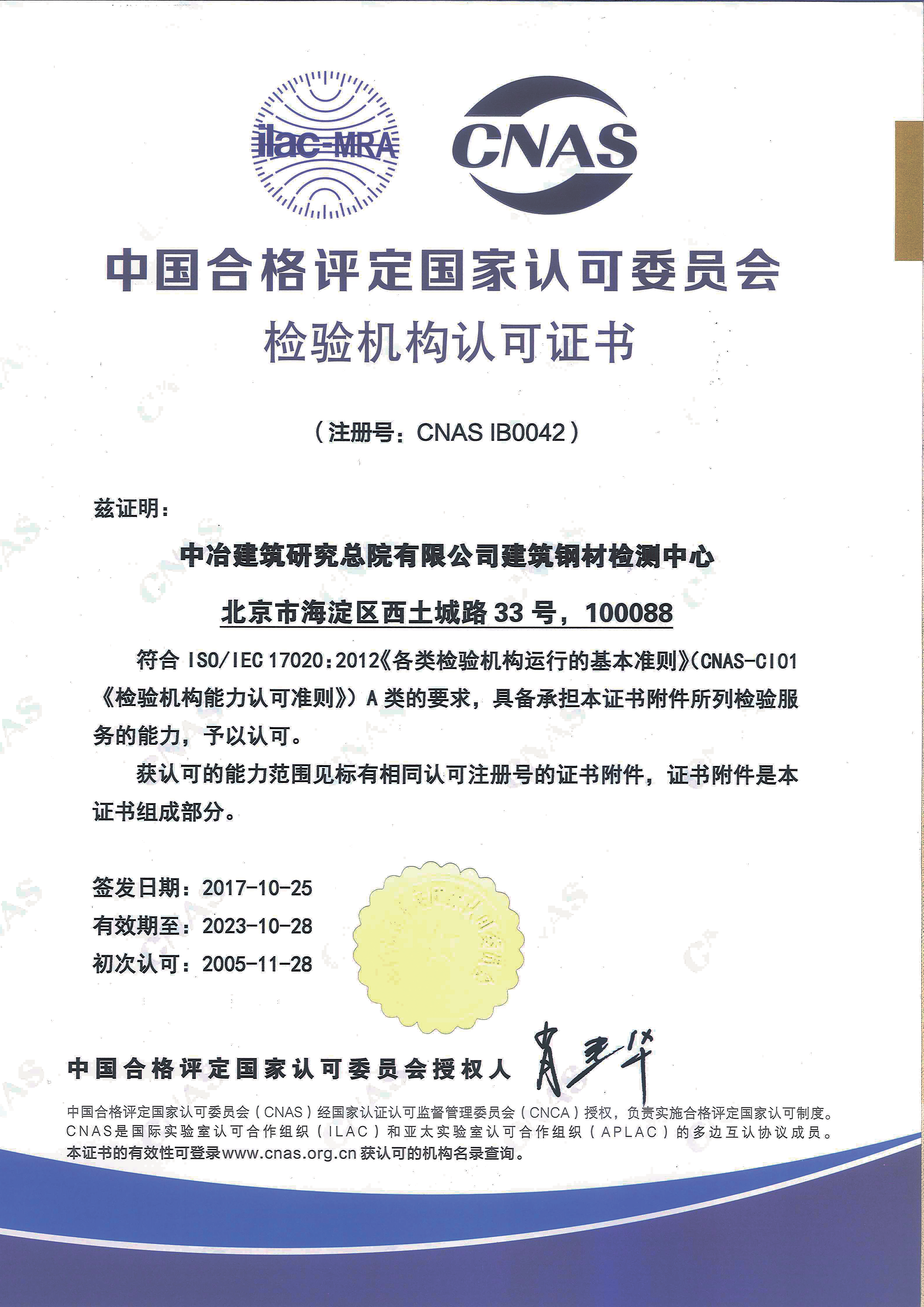 中冶(北京)冶金產(chǎn)品認(rèn)證公司獲認(rèn)監(jiān)委批準(zhǔn)
