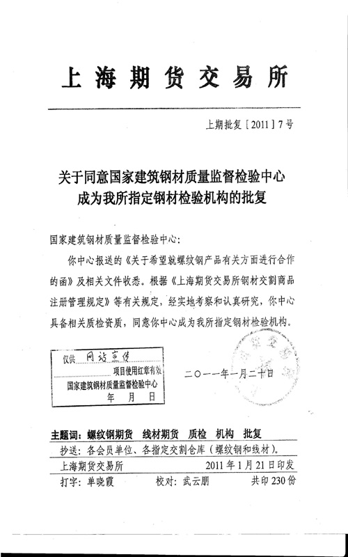 上海期貨交易所指定鋼材檢驗(yàn)機(jī)構(gòu)