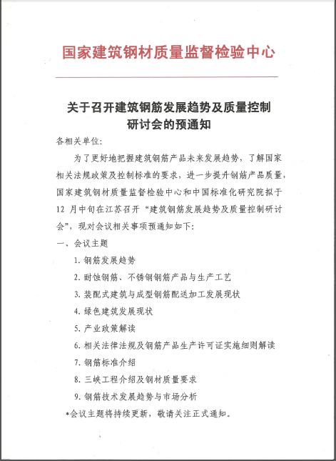 關(guān)于召開建筑鋼筋發(fā)展趨勢及質(zhì)量控制研討會(huì)的通知